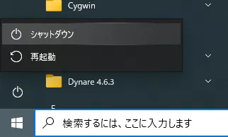 - 画面左下のWindowsマークをクリックし,「再起動」もしくは「シャットダウン」をクリックしてください.